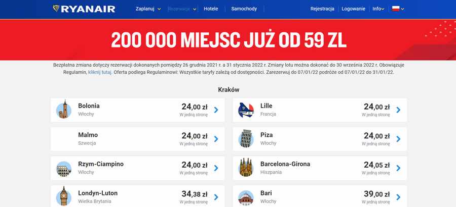 Na tym nie koniec dobrych wieści. Jeśli rezerwowaliście lot po 26 grudnia zeszłego roku lub planujecie zakup biletu do końca stycznia, to będziecie mogli liczyć na bezpłatną zmianę daty wylotu! Jedyny warunek – nowy termin musi mieścić się do końca września 2022. W takim przypadku dopłacicie jedynie różnicę w cenie biletu – jeśli takowa będzie.