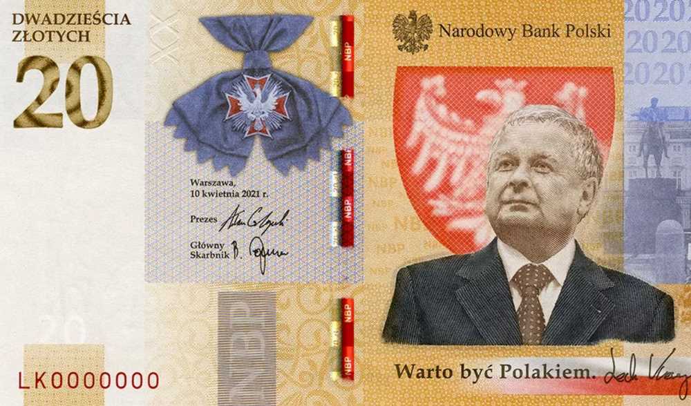 Ponadto na przedniej stronie banknotu znajduje się napis NBP, biało-czerwona wstążka oraz podpis byłego prezydenta. Widzimy także cytat, który wzbudził sporo kontrowersji: „Warto być Polakiem.”. Okazuje się jednak, że to słowa samego Kaczyńskiego, które wygłosił w czerwcu 2006 roku podczas jednego z Kongresów PiS-u.